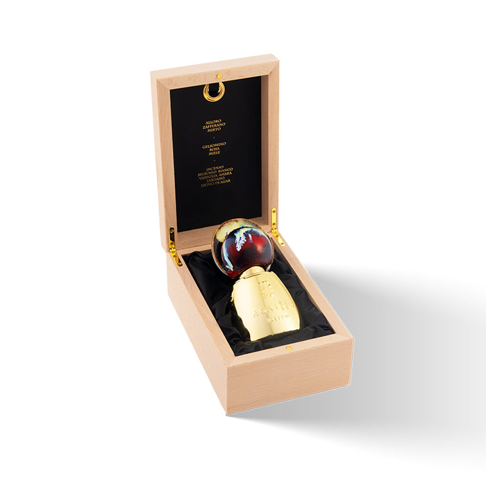 Castiamanti (the house of chaste lovers) opens with the fleeting subtlety of the ancient plant deemed sacred to Aphrodite – myrtle – which merges with precious saffron and the balsamic nuances of laurel to result in an indomitable desire for eros. The intoxicating top notes gradually intensify into enveloping heart notes as luxuriant honey notes meet opulent rose petals splayed beautifully across the bed and the intriguing night breeze of jasmine that pervades this home. The trail leads to the lovers’ room in time to release its warm yet mysterious base notes, in which the king of resins – incense – embraces sweet vanilla and welcomes Oriental charm with open arms: a contamination of amber and labdanum…